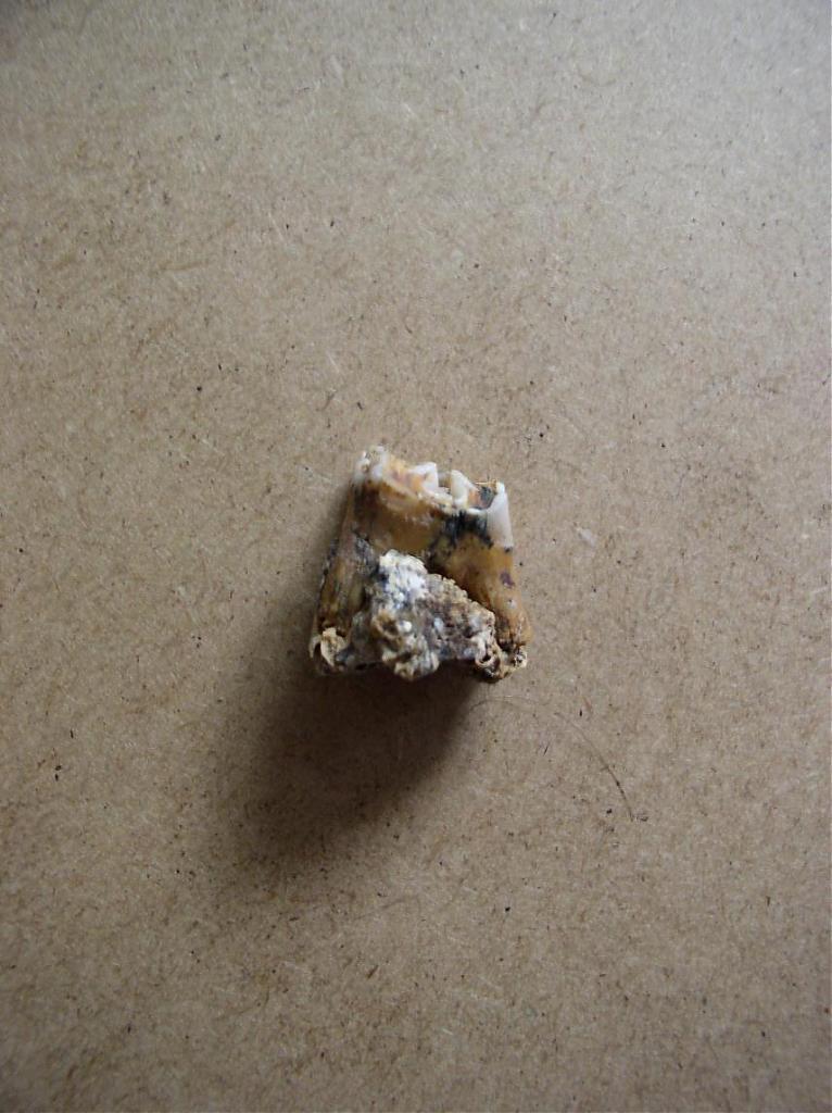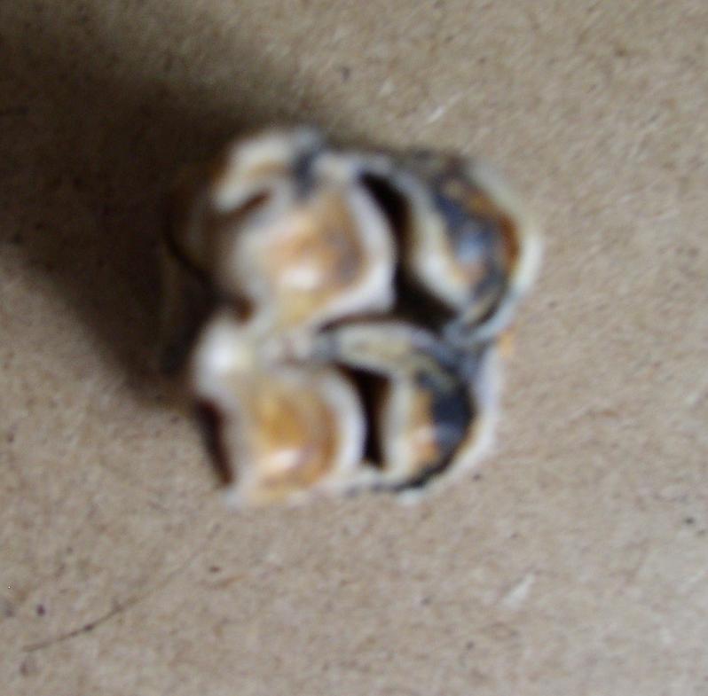 Der kleinere Backenzahn ist Teilweise versteinert... und ca: 3,5 cm groß mit Wurzel