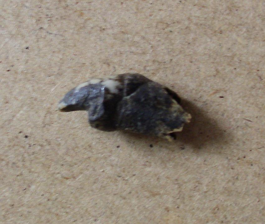 Das Kleine Ding sieht aus wie eine Kralle......ist versteinert und schwarz mamoriert.... die Krallenspitze ist ca 1cm groß und geht dann in den Knochen über!!