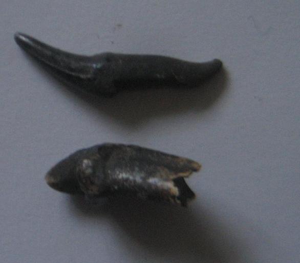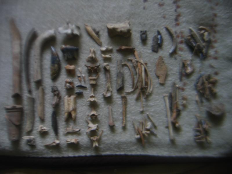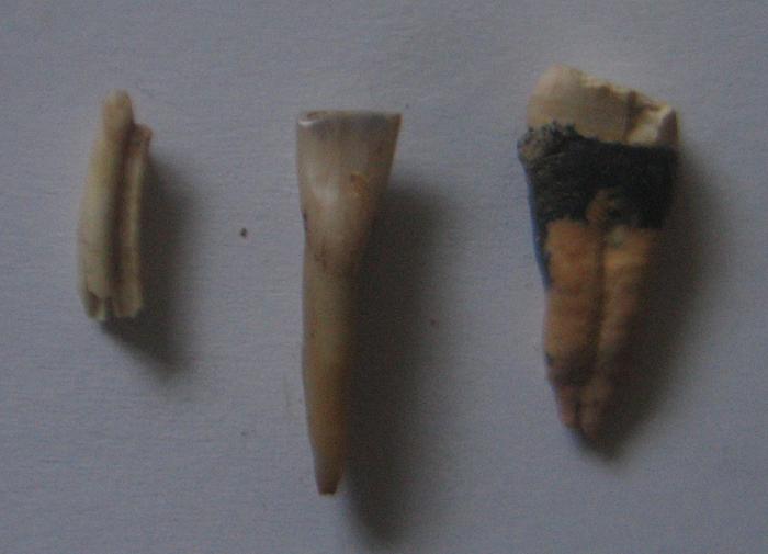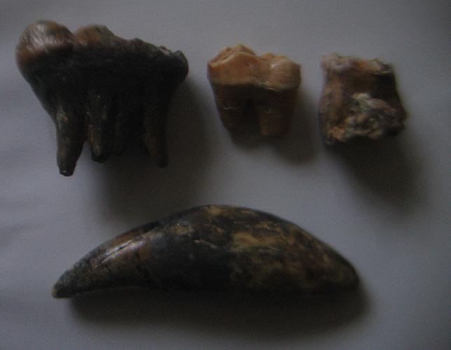 ....hier noch mal ein großes foto von der kralle! größe ist ca 2cm das ding dadrüber sieht mehr wie ein eckzahn von irgend einem raubtier aus! hab auch noch mal bilder von den anderen zähnen gemacht, die ich da gefunden habe..... der lange und die zwei backenzähne sind von einem höhlenbär und linke ist von einem pferd....... das andere sind auch noch zähne wobei der mittlere ein schneidezahn vom menschen ist..... auf dem anderen foto ist der rest drauf, den ich gefunden habe! alles durcheinander....knochen von kleinsäugern.....und anderen tieren....und noch ein paar teile wo ich denke das sie vom höhlenbär stammen! ein teil ist komplett versteinert und der rest teilweise........tut mir leid aber besser habe ich die fotos nicht hinbekommen- müsste glaube ich, mal ne neue kamera her