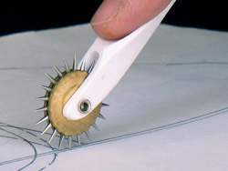 Evtl. kommt das Ding aus Omas Naehkaestchen und nennt sich "Naehraedchen" oder "Kopierraedchen". Hinten dran musst Du dir dann noch einen Handgriff aus Holz denken.