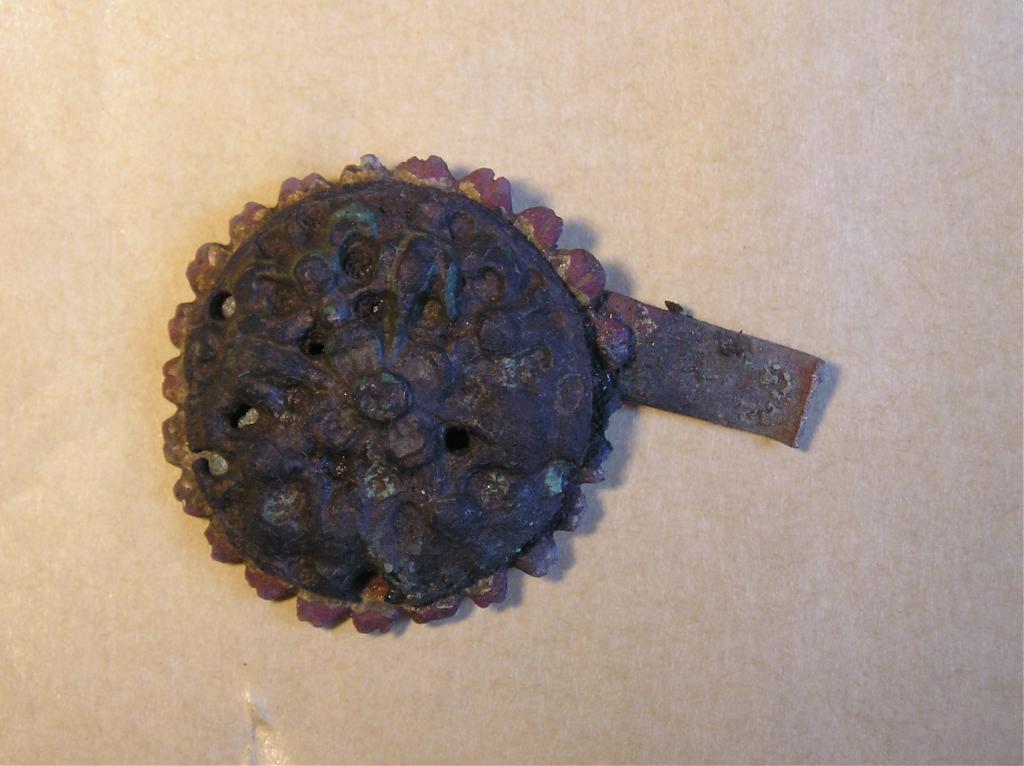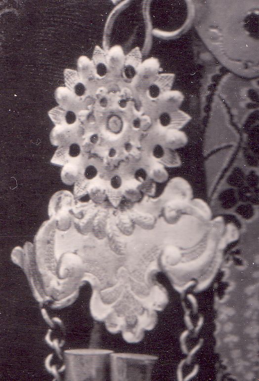 Anbei ein Bildausschnitt mit einem Beschlag aus dem 19. Jh.. (Brautgürtel, unten an den Ketten hängt ein Besteckköcher).