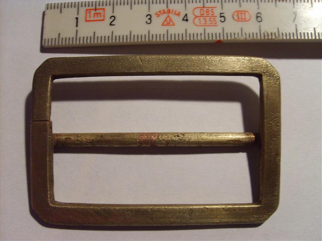 Nun eine Fage an die Schnallenexperten.... Um was für eine Schnalle könnte es sich hier handeln ? Ich habe sie schon gereinigt...der Haken an der Schnalle war aus Eisen, der ist weggegammelt. Es ist auch nix gepunzt auf der Schnalle.