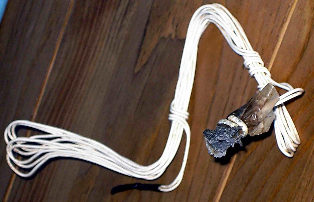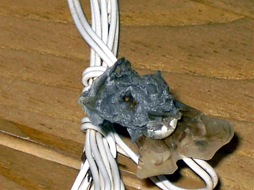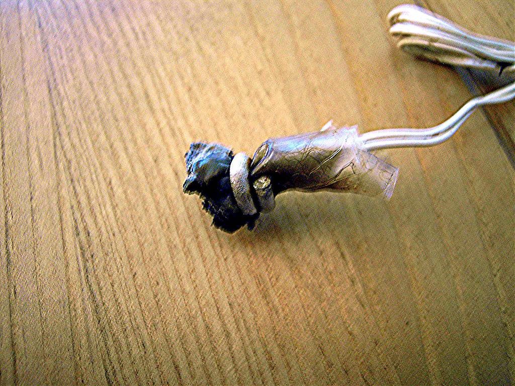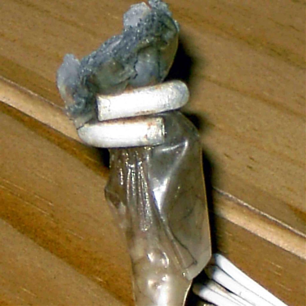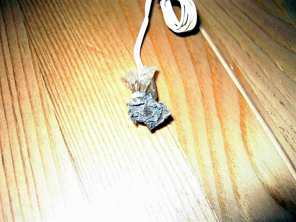 Falls es etwas zur zeitlichen Bestimmung beitragen kann, der Draht ist nicht aus Kupfer, es scheint ein isolierter Eisendraht zu sein. Die Metallklemme, mit der die Plastikfolie zusammengehalten wird, schient kein Eisen zu sein, da sie keinerlei Rost angesetzt hat.