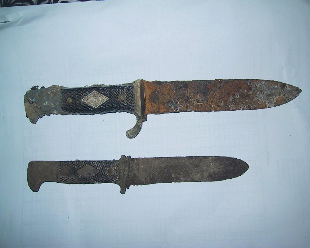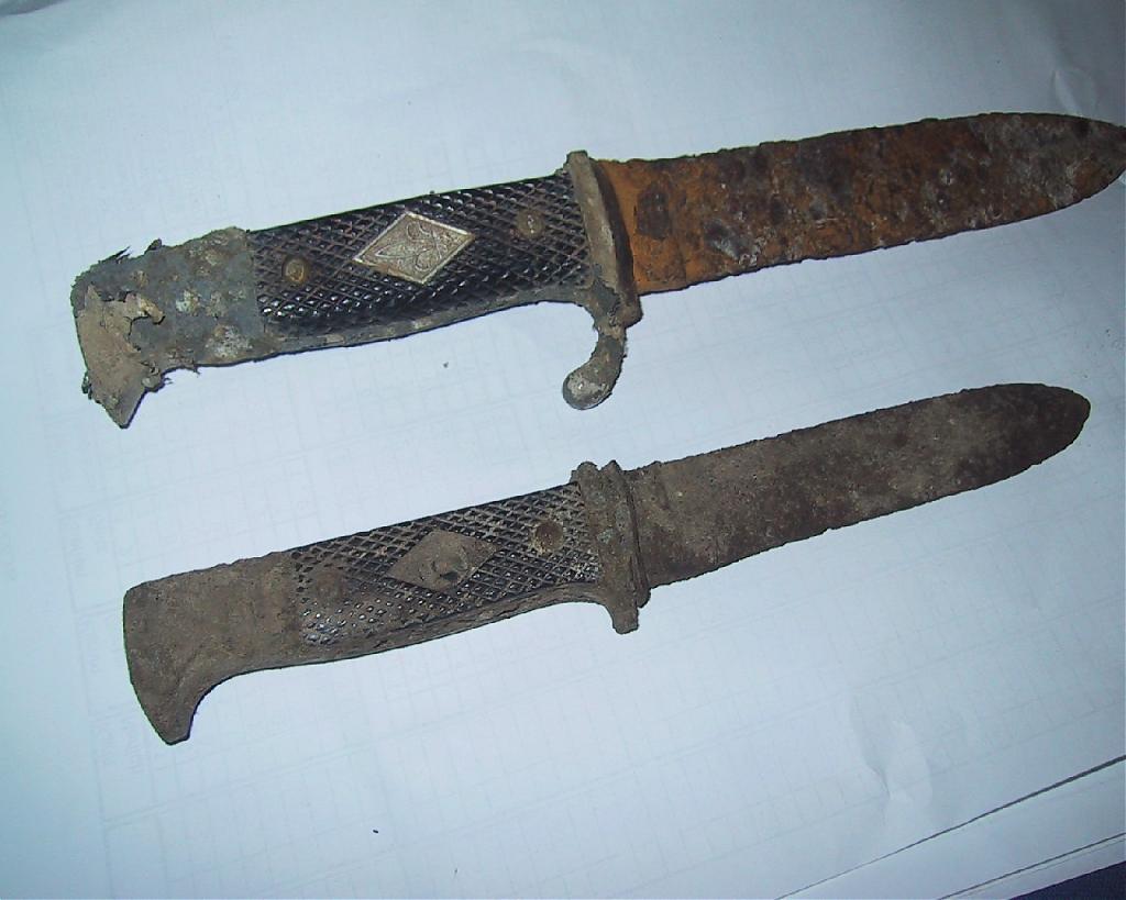 War heute nochmal an meiner Stelle.Ausser Münzen und Müll gabs heut noch ein Fahrtenmesser,leider ohne Emblem.Habe mal zum Vergleich oben ein Pfadfindermesser neben gelegt und würde gern wissen ob das Teil von heute HJ ist.