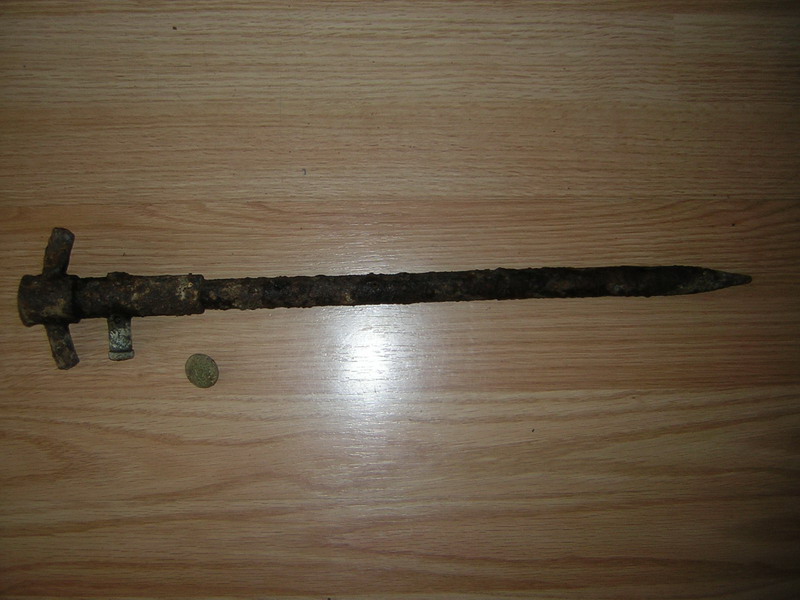 Hat jemand eine Idee was das lange Ding sein könnte.Lag in etwa 1 Meter neben dem Knopf,da muß aber kein zusammenhang betehen ,abgeschlagene große Hülsenböden lagen auch da herrum.Den toten Dachs habe ich mit etwas Laub bedeckt,schade um Ihn.