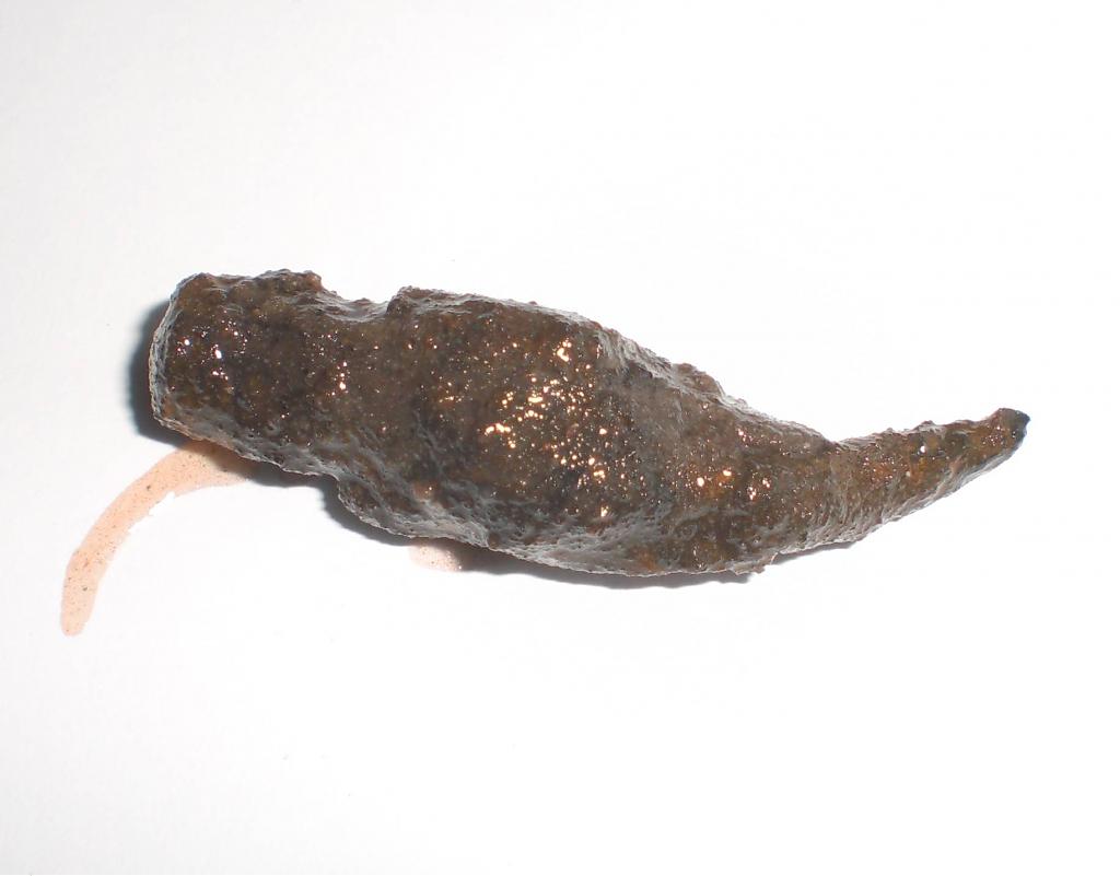 ich würde mal auf so ne spitze tippen wie se auf zäunen drauf ist diese geschmiedeten, nur halt leicht verbogen. nagel schließe ich auch aus, weil auf die länge zu dick und so. auch einen dübel aus metall schließe ich aus, weil diese hinten dicker waren, also gebreitet und so ne art verzahnung dran hatten und außerdem 4 eckig waren (boah wasn satz^^)