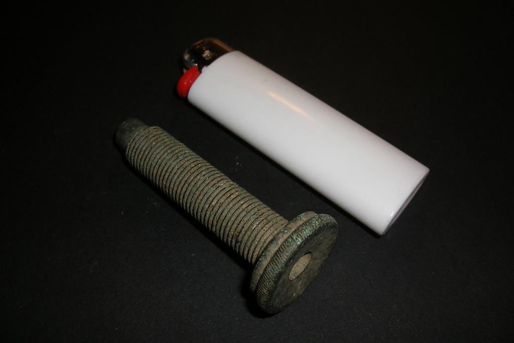 Bild 1 : Kupferlegierung, Gewindeaußendurchm. 14 mm, Steigung 1 mm, Bohrung geht ganz durch, schöne Patina
