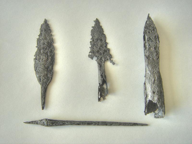Erstes Bild, ganz rechts: Vermute ne Speerspitze eines spät-römischen (evtl. HRRDN-Heiliges Römisches Reich Dt. Nation) Wurfspeeres (Pillum?). Kann mich hier natürlich irren, bin kein Fachmann der Antike, gell?