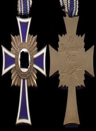 ich habe hier das Mutterkreuz einer Vorfahrin vor mir, ist also definitiv keine Fälschung, da schon immer in Familienbesitz. Auf der Rückseite ist die Unterschrift von Adolf H. eingraviert, außerdem 16. Dezember 1938. Was ich vergeblich suche, ist ein Herstellercode. Gab es den bei Mutterkreuzen nicht?