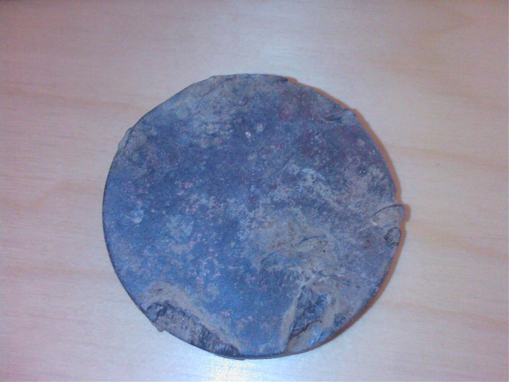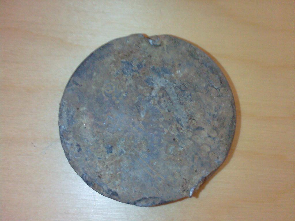 Habe diese Bleischeibe auf einem Acker gefunden, sie ist 7 cm im Durchmesser und 1 cm dick.