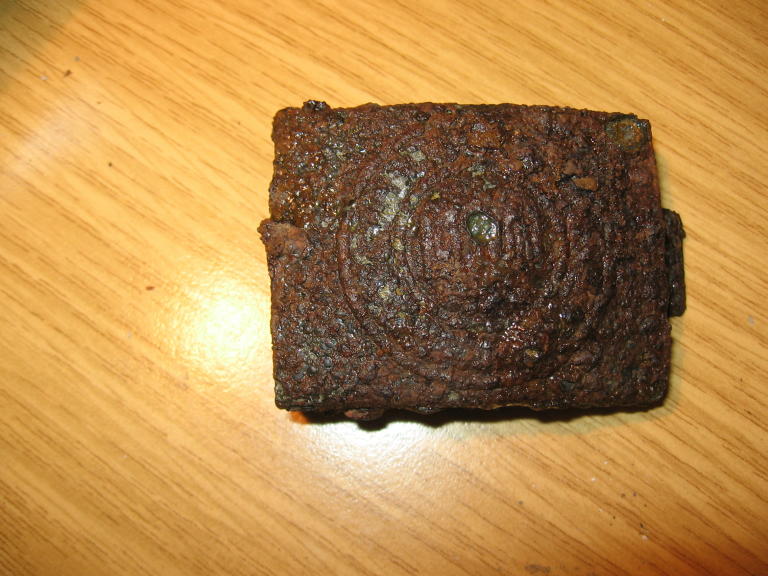 Habe gerade das nächste Teil aus der Elektrolyse geholt. Das Koppelschloss ist allerdings nicht selber gefunden, sondern wurde mir von deckerbitte geschenkt. Vom ersten Anblick her eigentlich ein Teil für die Tonne, nach der Lyse aber doch recht ansehnlich, was beim Bild aber nicht so gut rüber kommt.