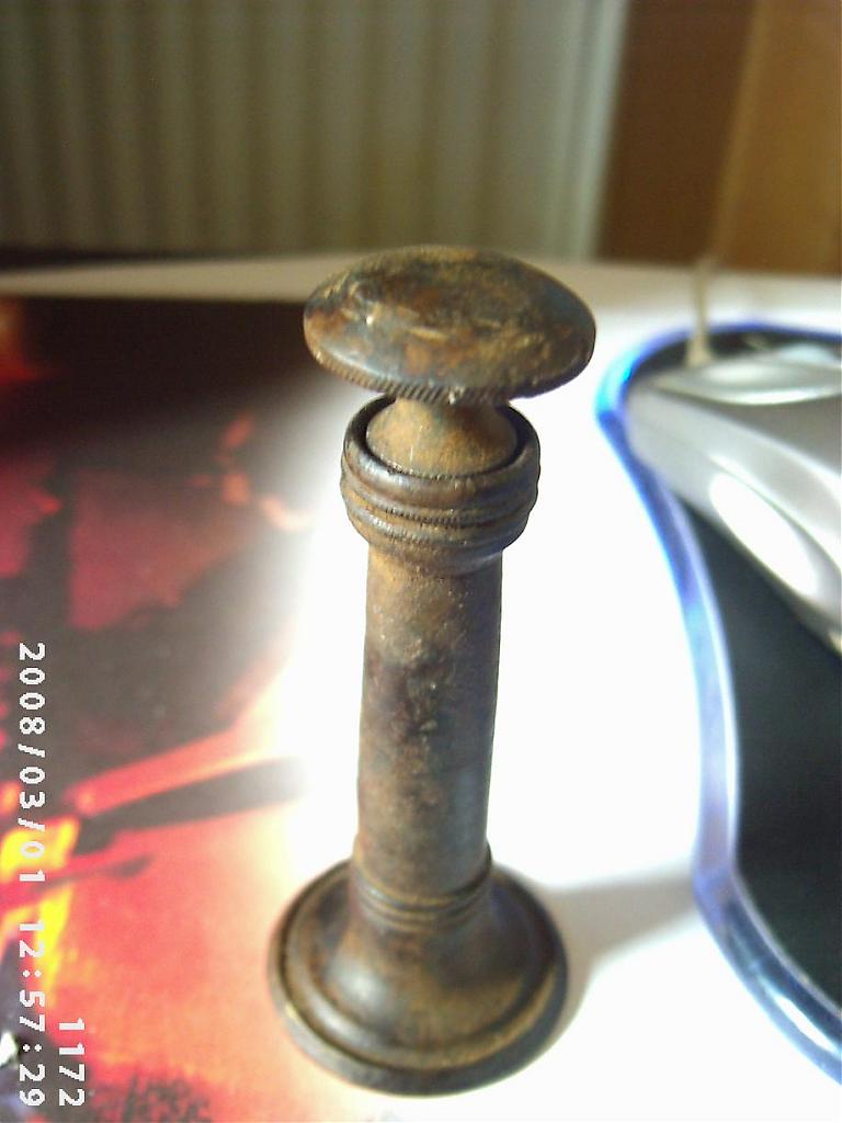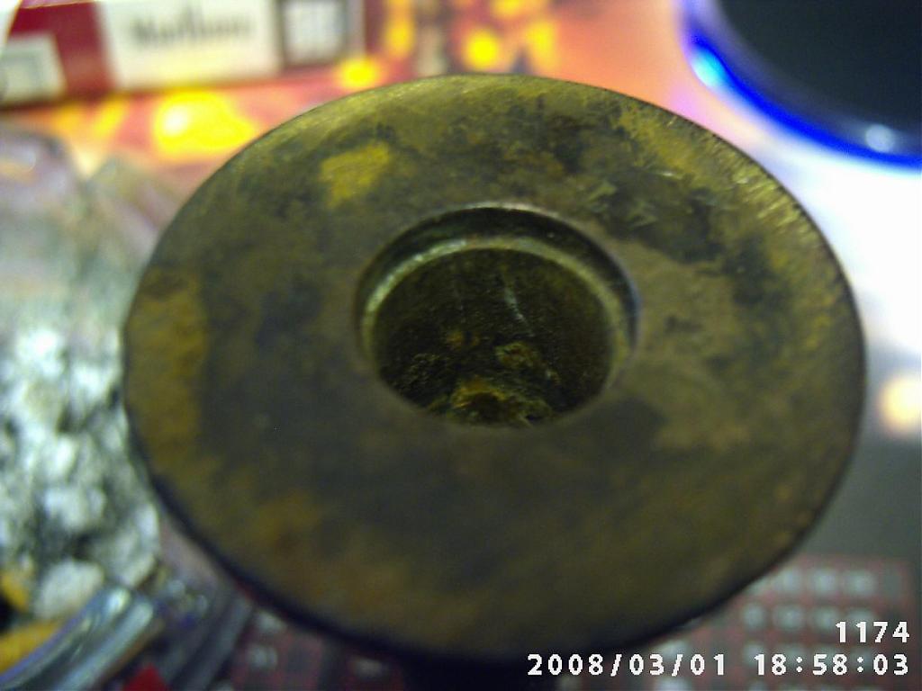 Habe dieses Teil in einen alten Leinensack zusammen mit Hülsen ohne Zündhütchen und ohne Geschosse gefunden.Darum lagen noch Hülsen auf Holzsteckbrettern(ungefüllt und ohne Kopf)