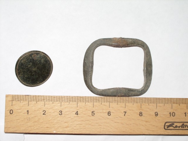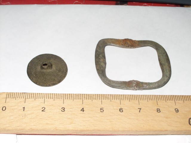den knopf und diese schnalle(hat ich schonmal reingestellt die schnalle) hab ich auf einem ehemaligen weinberg gefunden mich würde intressieren aus welcher zeit in etwa beides kommt beim matrial bin ich nicht sicher ob bronze oder kupfer !?