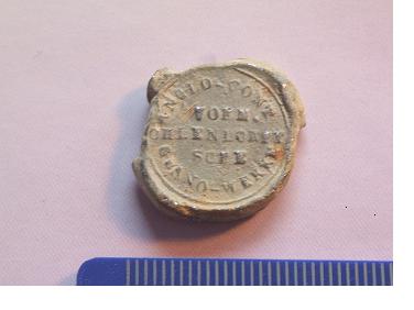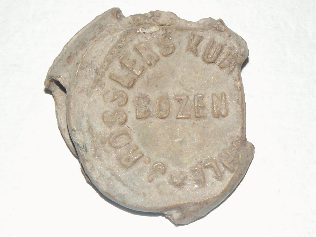 Es ist meines erachtens eine Bleiplombe, da in der Mitte eine offene Naht verläuft.