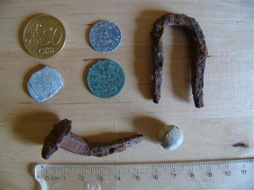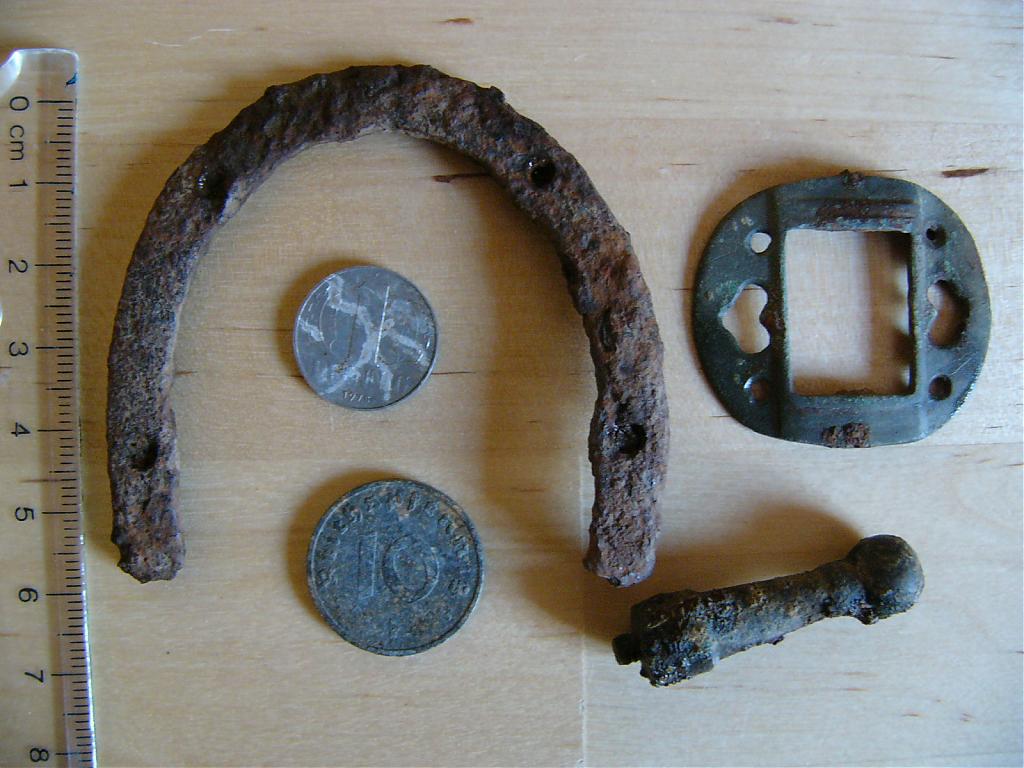 Wie immer stelle ich meine Funde zur Diskussion. Nichts besonderes dabei, aber schon wieder irgendeine Schnalle, 10 Reichspfennig von 1945, DDR-Pfennig, Zinkpfennig Dt.Reich, 2 Pf. Dt.Reich, alter Eisennagel, kleine Bleikugel, eine Plombe mit schönem Wappen... und ein paar Ufos, bei denen ich eure Hilfe benötige. Also schreibt mir was ihr wisst oder denkt.