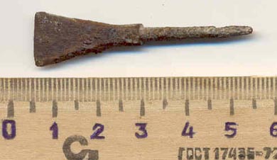 Aufgrund der Größe denke ich aber eher an einen Holzschaber oder ähnliches, vielleicht auch eine Hacke.