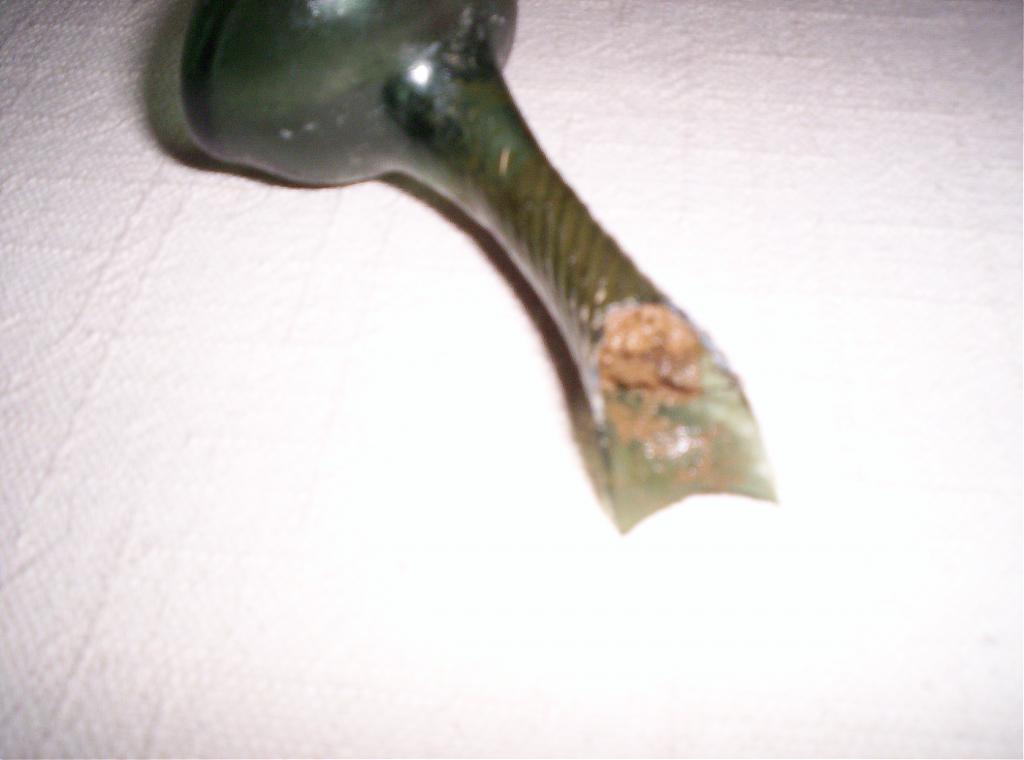 Einst fand ich neben einem alten Weg viele Scherben ,darunter auch Glas.Vieleicht intressiert es jemanden!?Was könnte das für ein Gefäss gewesen sein?Kai.