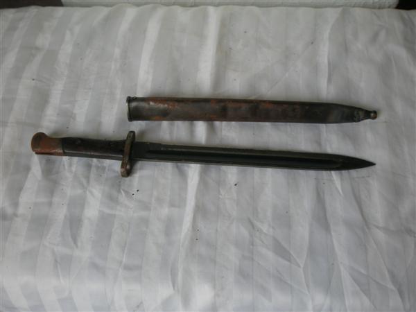 das eine ist ein k98k bajonett 84/98 mit bakelitgriffschalen...
