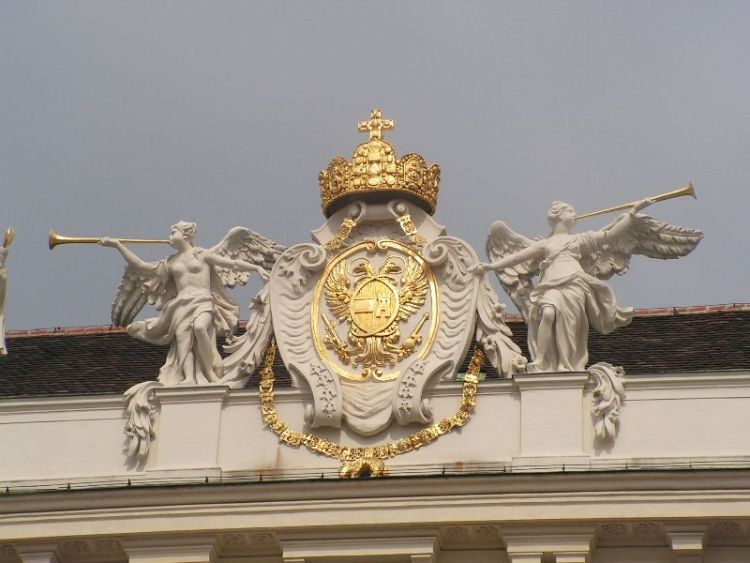 Der österreichische Doppelkopfadler ist auf das aus zwei Herrscherhäusern bestehende Regententum gemünzt...