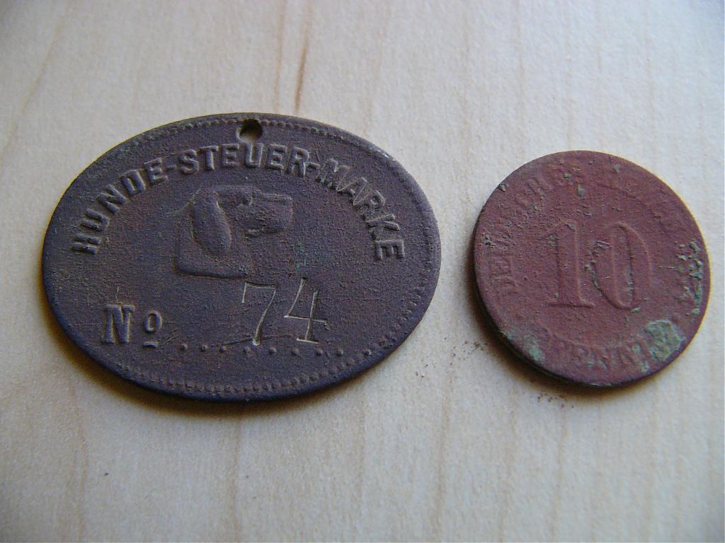 - eine Hundesteuermarke von 1898 in toller Erhaltung