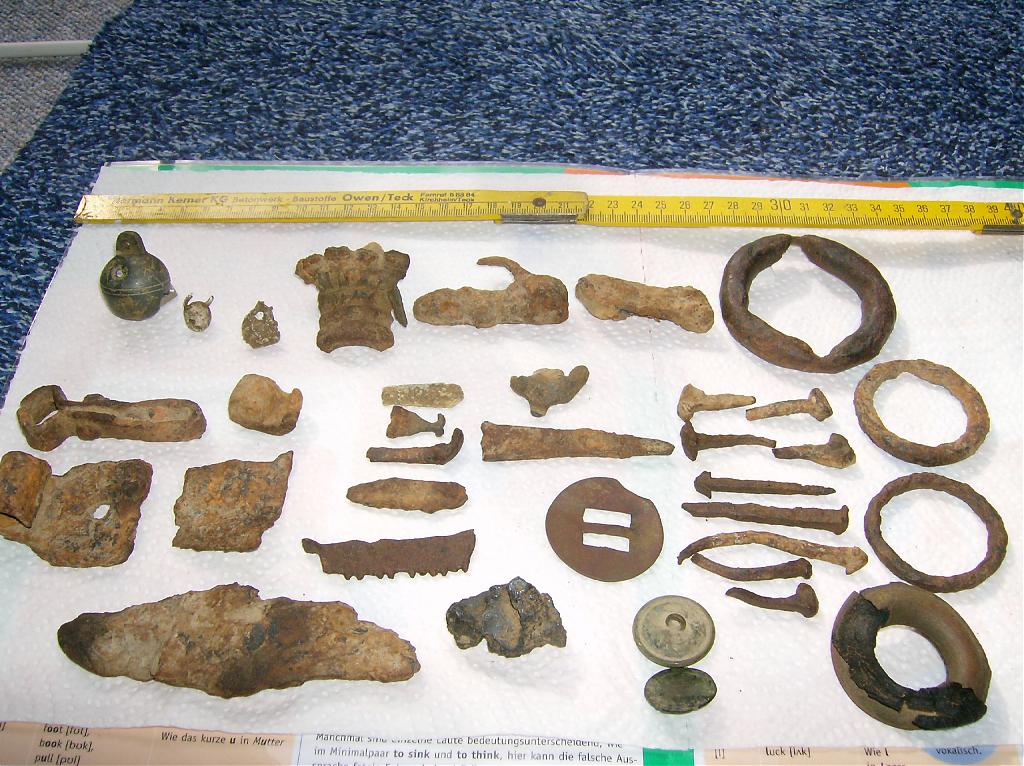 ich hab auf 2 Äcker ein haufen Schrott und Nägel gefunden..von ein paar Teilen hab ich trotzdem mal ein Foto gemacht, in der Hoffnung das vieleicht doch mal was dabei ist, bei soviel Müll den ich schon ausgegraben habe