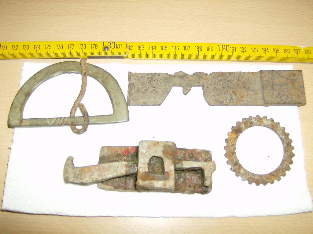 2 sieht aus wie das Griffteil eines Messers,schwert ?? im Umkreis lag ein Haufen vergammelter klingen.