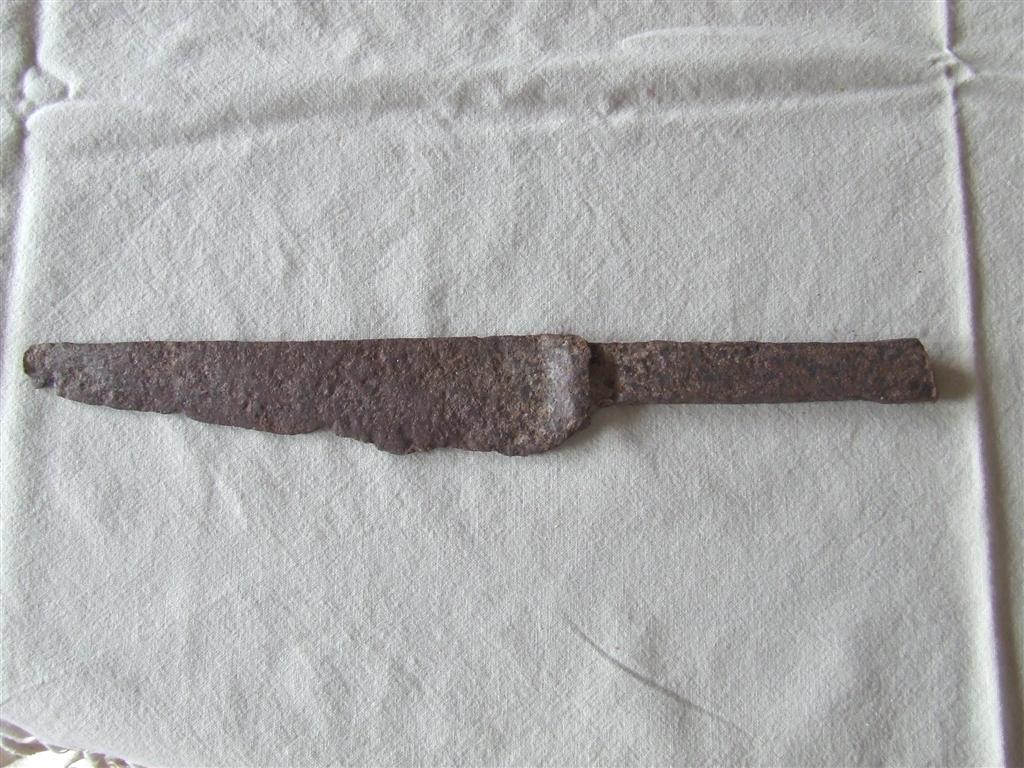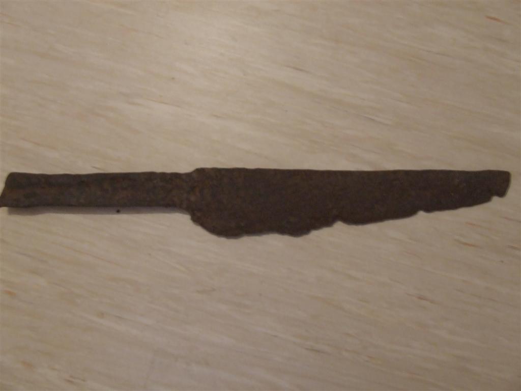 Ich habe von meinem Großvater ein altes Messer erhalten, dass er vor vielen Jahren beim Pflügen gefunden hat. Kann mir jemand sagen wie alt es ungefähr sein könnte und zu was es benutzt wurde? Wegen der Klingenform denke ich, dass es sehr alt ist. Es ist 36,5 cm lang und 4,7 cm breit. Die Klinge ist 27,7 cm lang.