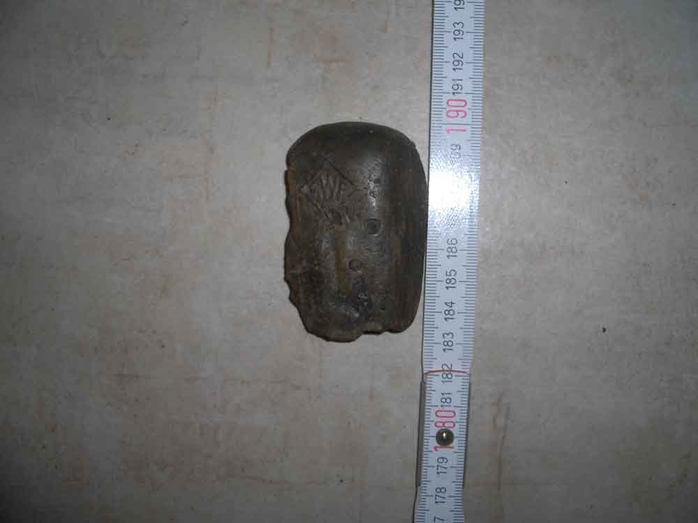habe dieses Teil an einem Alten Steinbtuch gefunden. Auf der Vorderseite (1. Bild) kann man die Buchstaben SW(F) oder (E) in einem Caro erkennen.