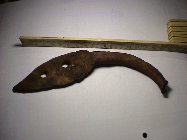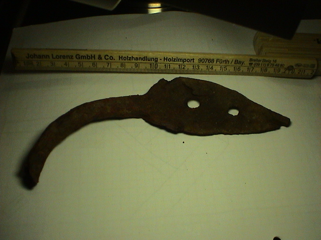 dieses Eisenteil hab ich noch ausgegraben.Ein Blatt an einem Rundeisen?Wofür war das gut?