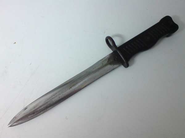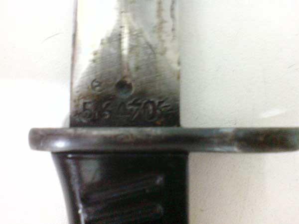hab hier ein Bajonett, welches ich mal von meinem Opa bekommen habe und mir gerade wieder in die Hände gefallen ist. Wo der es her hat, weiss ich leider nicht (er war nicht im Krieg). Denke aber, dass es sich um ein neueres Modell handelt...hoffe ihr könnt mir genaueres sagen =) Falls mehr Fotos erwünscht, bitte melden!