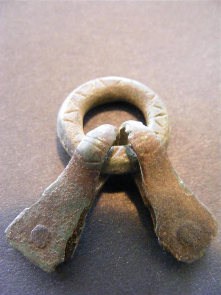 Mir viel sofort ein das ich ein fast identisches Stück vor kurzem ohne interesannte Beifunde gefunden habe.Leider stand in dem Beschreibungstext des Museums nicht was dieses Teil im einzelnen darstellen sol sondern es ging um andere Beigaben wie Fibeln und der gleichen.
