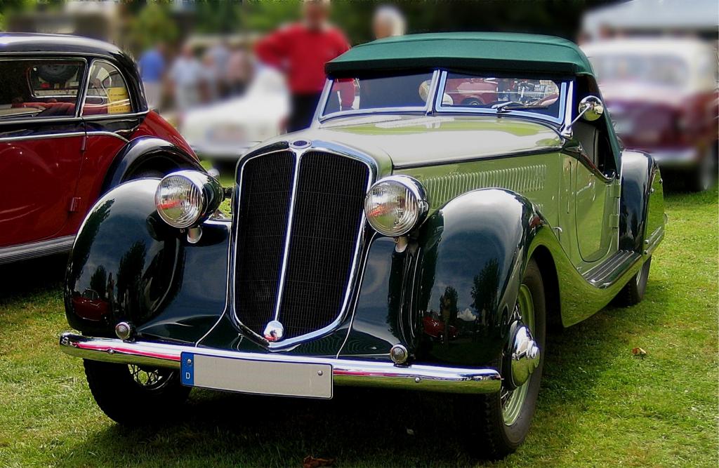 Für mich ganz klar eine Brosche. Auf dem rechten Bild war auf der rechten Seite evtl. mal eine bewegliche Nadel die dann links in der Öse "eingefädelt" wurde. Denke mal, daß in der Mitte irgendein größerer Schmuckstein gewesen sein könnte. Bei einem Autoemblem wären zwei Stifte oder Gewinde zu sehen aber niemals eine Öse denke ich.