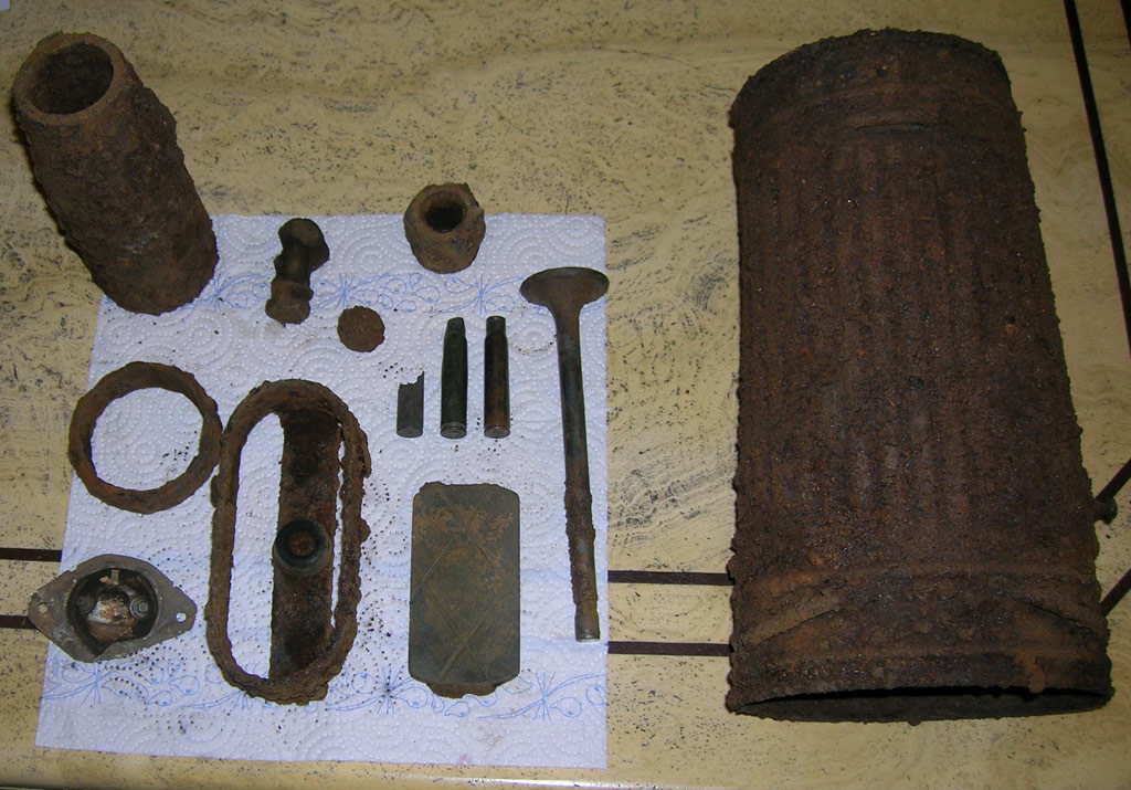 Hey.. war heute mal auf einem Feldflugplatzgelände von der LW unterwegs.. später wurde das Gelände als ein Fahrzeugsammelplatz und Abrüstungsplatz für deutsches Gerät genutzt.. Villeicht wießt ihr ja wobei es sich bei dem einen oder anderen Teil handeln könnte