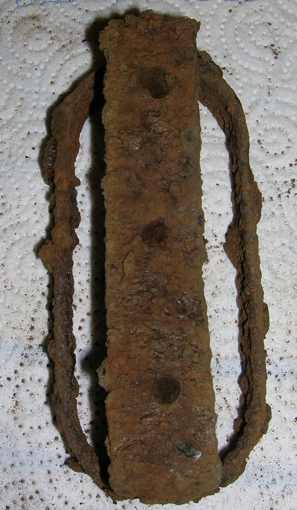 Bild 2+3: eine Seite abgerundet..ziemlich schwer scheint Messing oder Kupfer zu sein