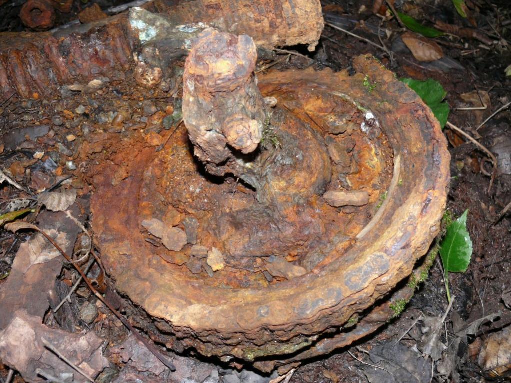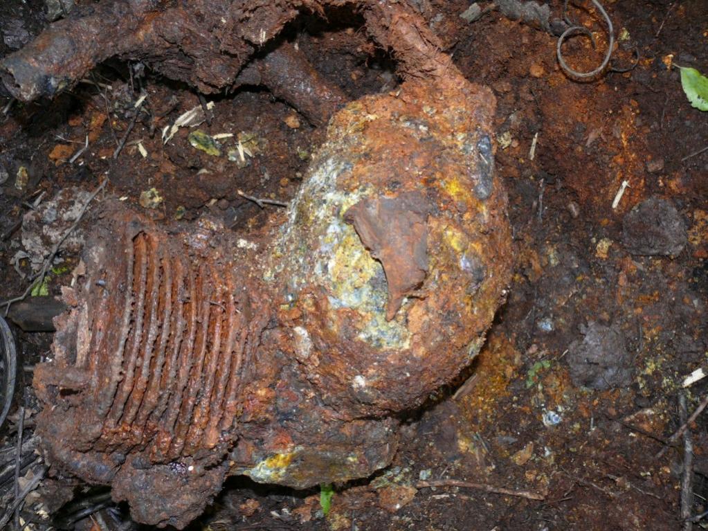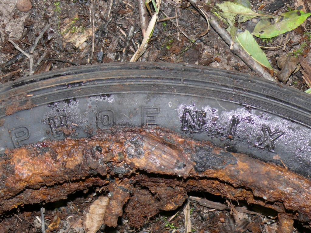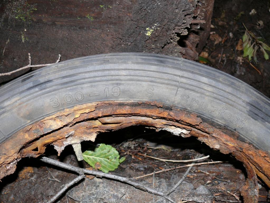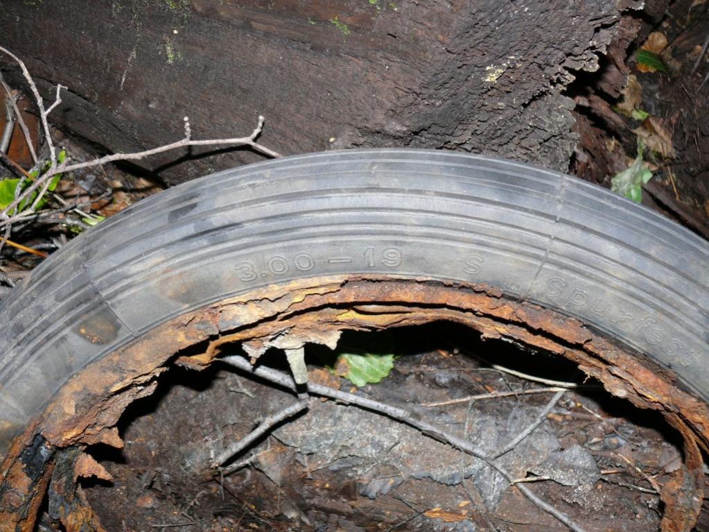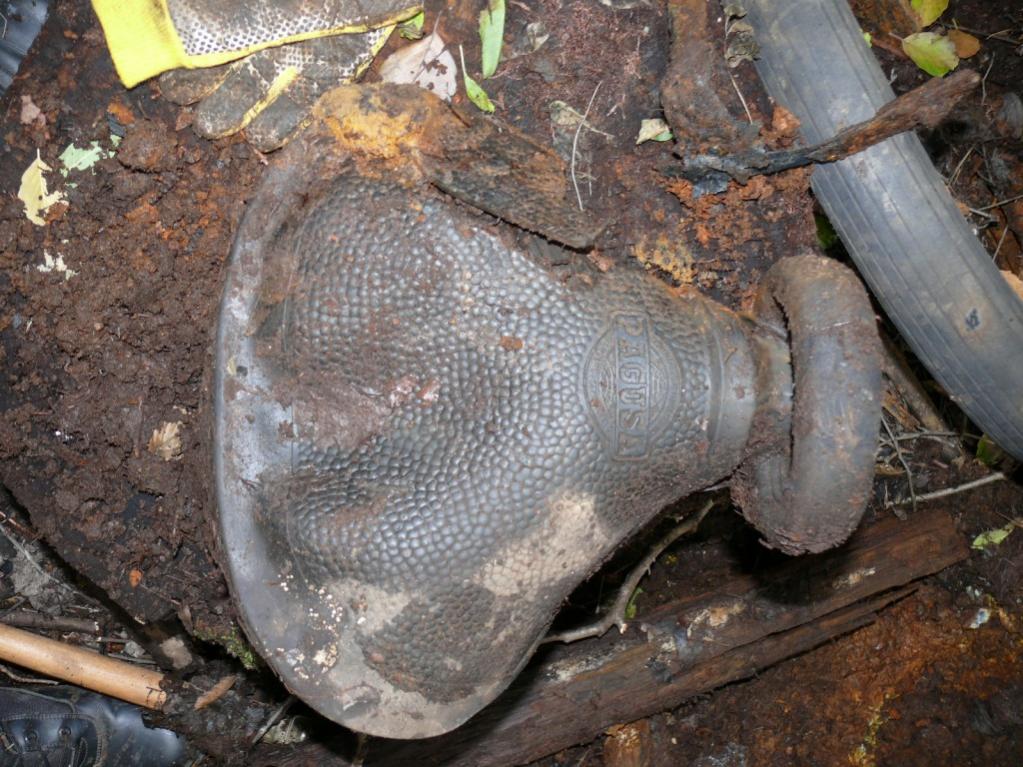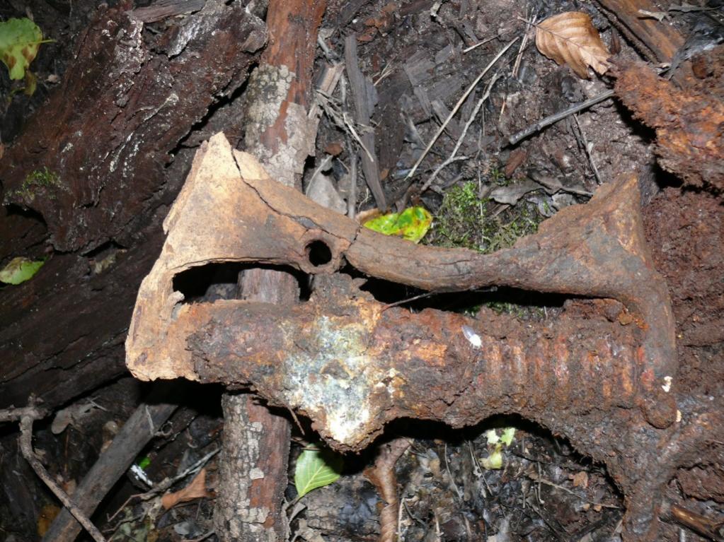 In einem anderen Bombenloch haben wir die Überreste von einem alten Motorrad gefunden.