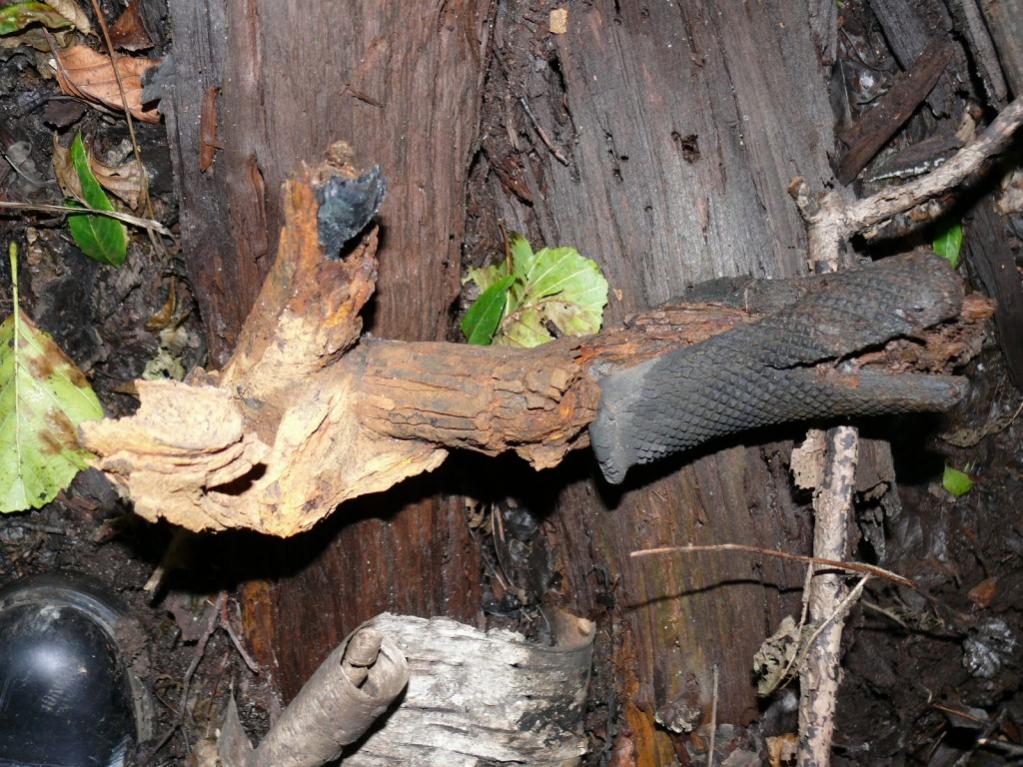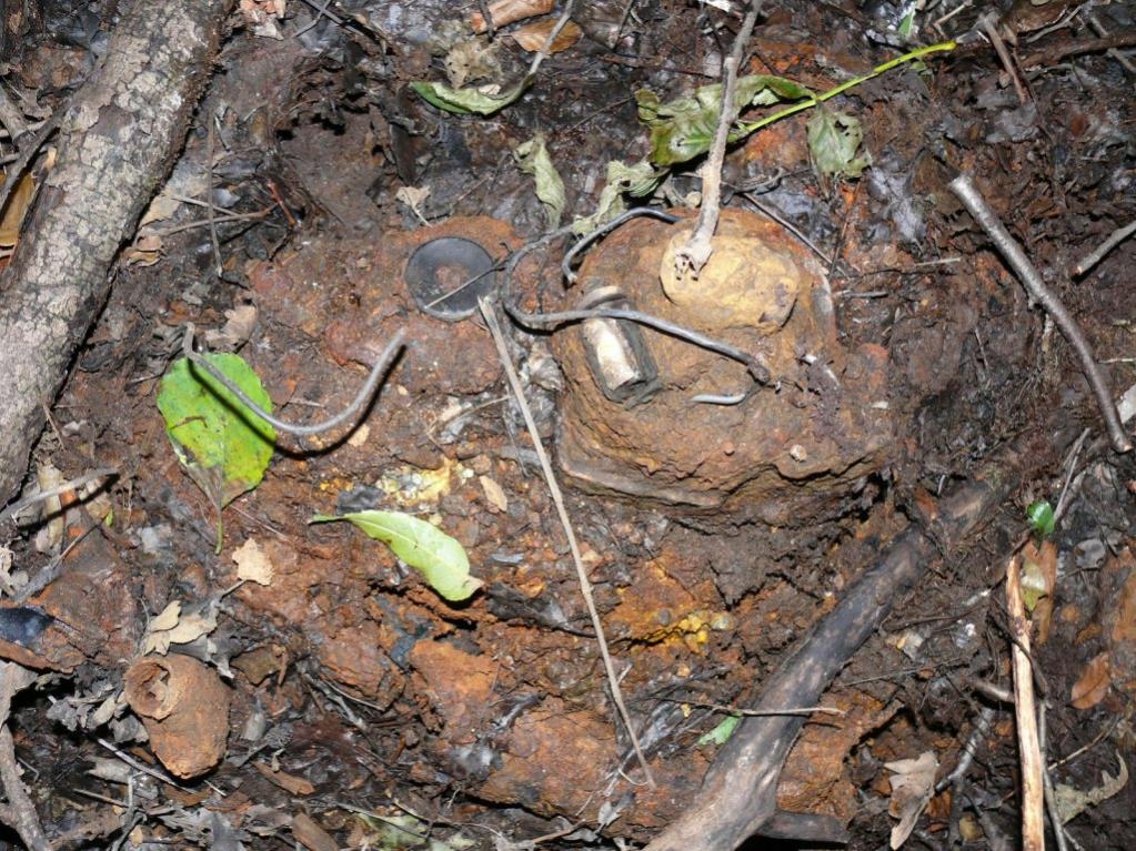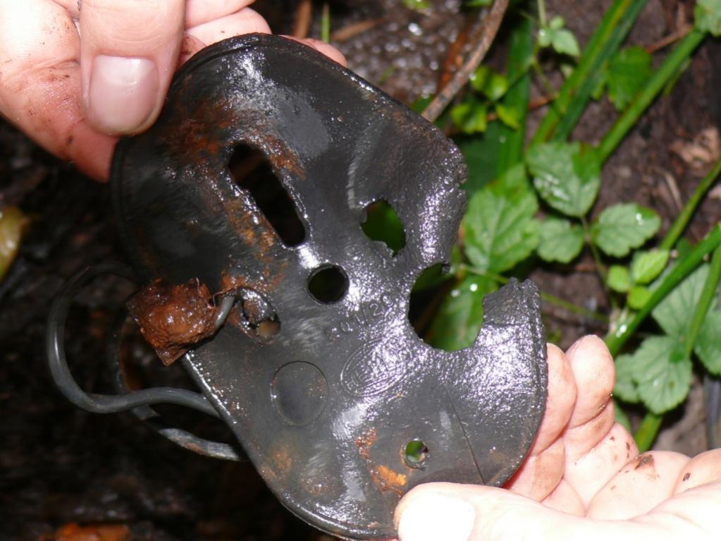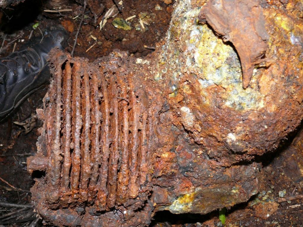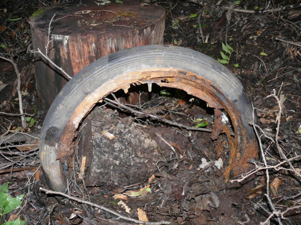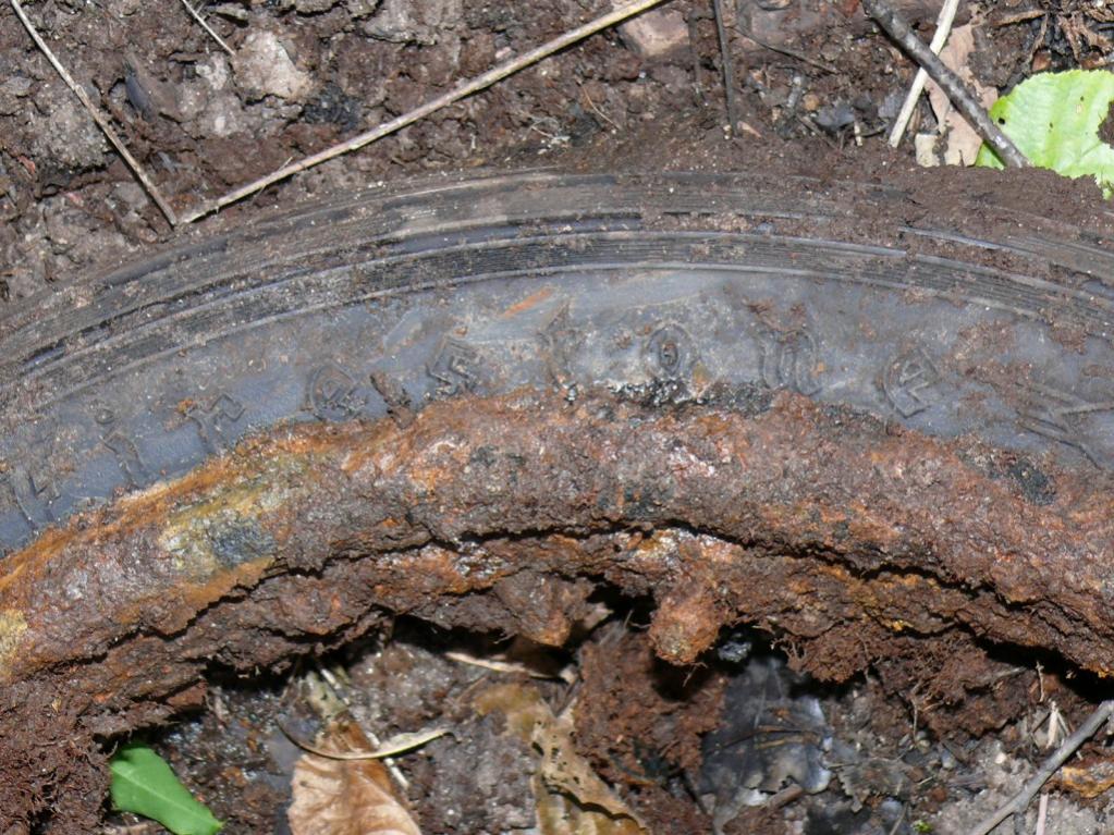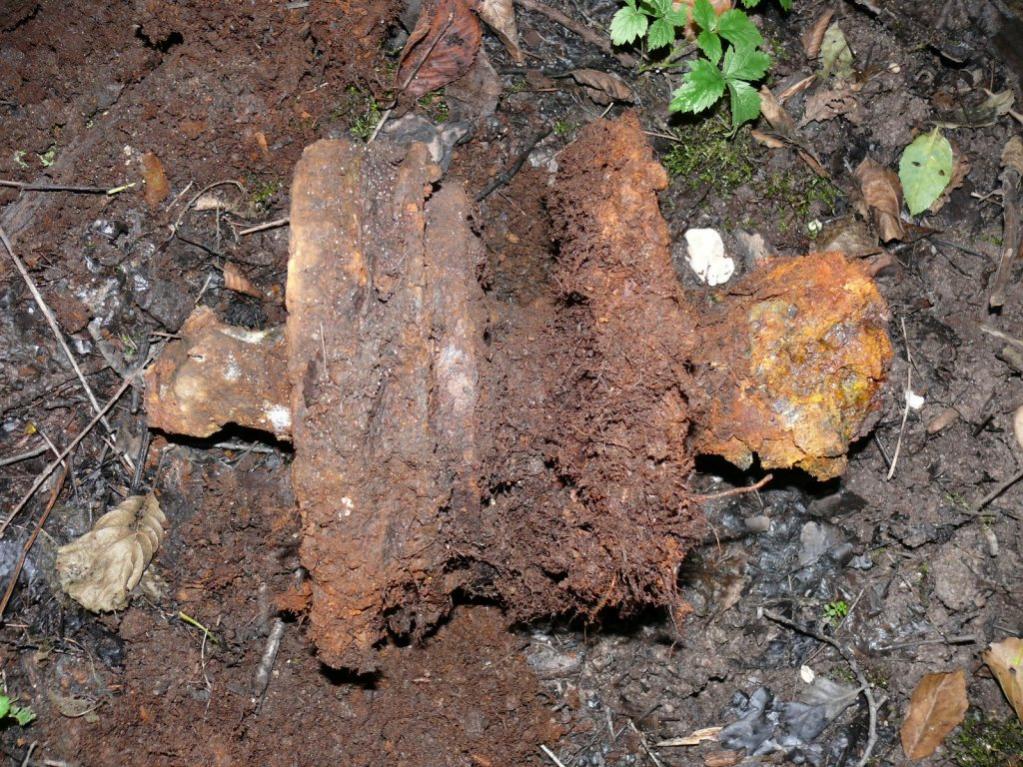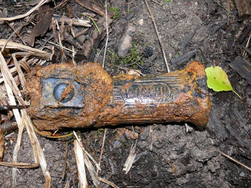 In einem anderen Bombenloch haben wir die Überreste von einem alten Motorrad gefunden.