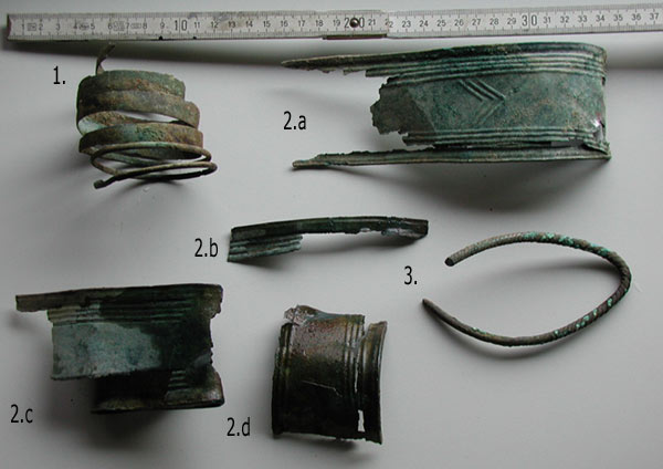 habe heute auf einem acker meinen ersten fund gemacht. auf ca. 4qm wurden 3 bronze schmuckstücke gefunden. 2 armreifen und ein mir unbekanntes ufo. wer kann mir etwas über das alter dieser stücke sagen. alle stücke sind gänzlich unbehandelt.