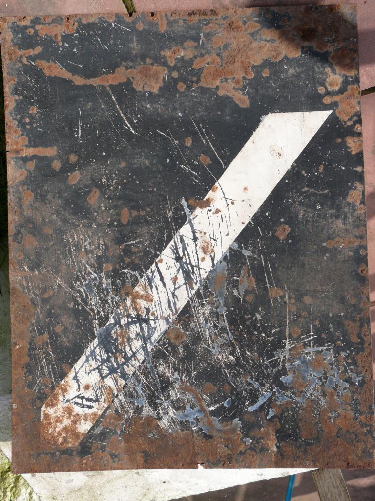 wir haben vor längerer Zeit bei einer Tour auf einem alten Fliegerhorst folgendes Schild Gefunden. Das Schild lag an einem alten Schießstand, wo die Flugzeuge eingeschossen wurden. Jetzt habe ich es in meiner Garage ein zweites mal gefunden und würde gerne mal wissen was es bedeutet und aus welcher Zeit es ist.