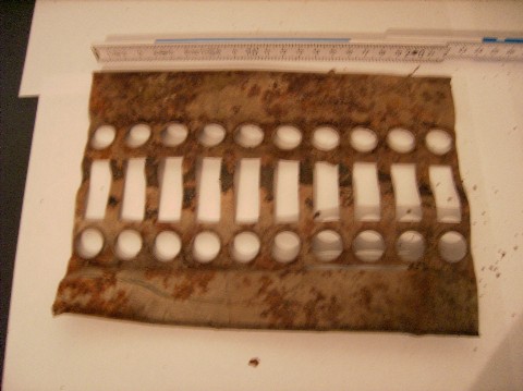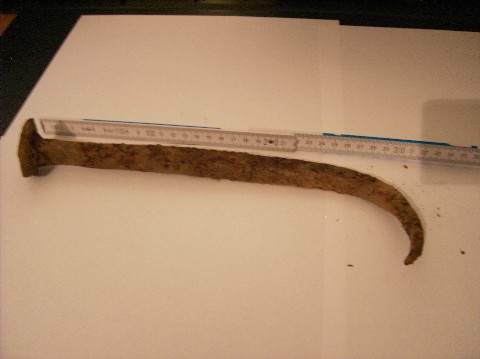Hallo, anbei mal ein paar Bilder der Funde von ca. 2 Stunden sondeln am Sonntag. Leider kann ich mir zu den Teilen auf den beigefügten Fotos keinen Reim machen - evtl kann jmd helfen? Die Maße sind am beigelegten Zollstock ablesbar. Besonders der "Nagel" ist riesig und schwer - pures Eisen! Das Blech - könnte es von etwas militärischem sein? Der Bügel und die "Verschlußklappe" auch? Zu den Rohstücken: Beide waren beim Fund ineinander geschoben - erinnerte mich ein wenig an einen Verschluß bei einem Gewehr...ist aber wohl nicht der Fall, oder??