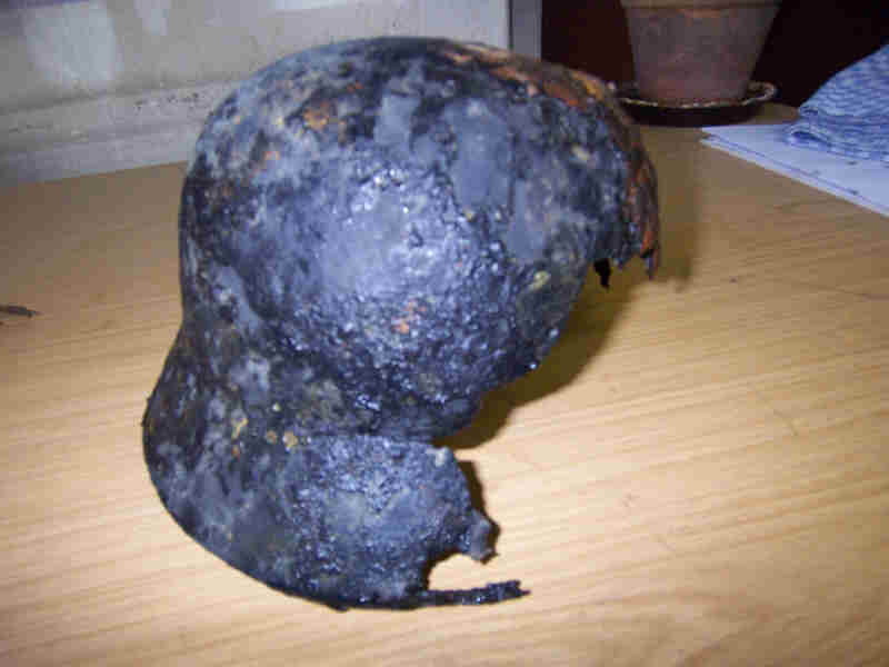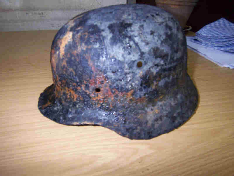 Beim anschließenden Tauchgang habe ich zwischen Bergen von Schrott auf ca. 18m noch den Helm und die Gasmaske gefunden. (= deutsche Gasmaske?)