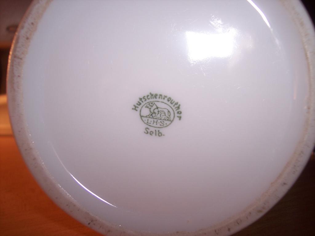 Die Kanne ist von Hutschenreuter Selb.Weiden hat eine Höhe von 12 cm (incl.Deckel) und einen unteren Durchmesser von 10 cm.
