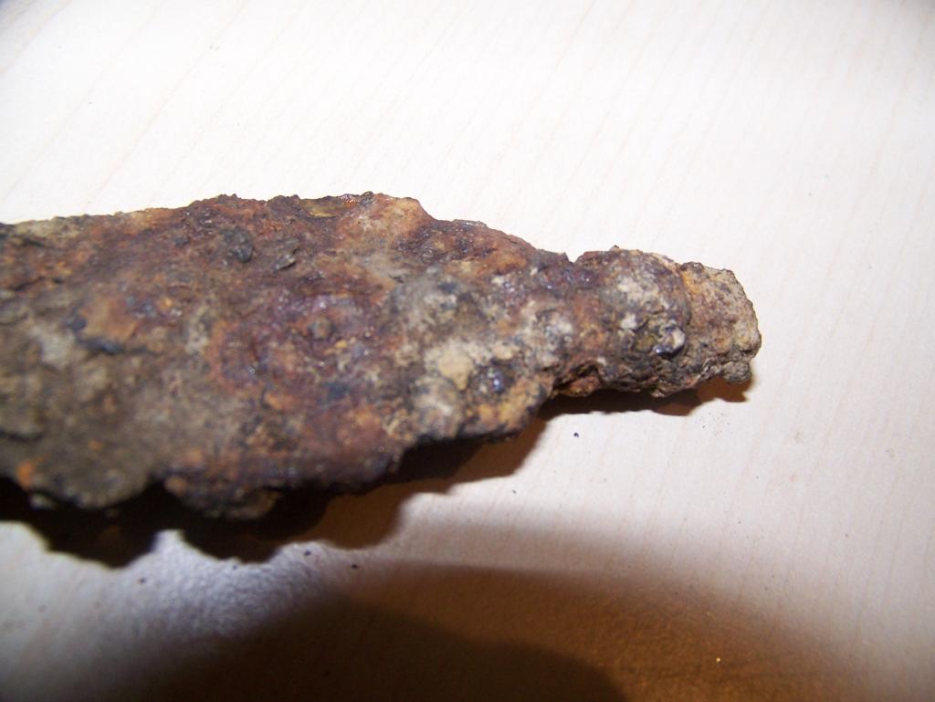 hier habe ich noch mal ein par bilder gemacht, die spitze ist ca. 7cm lang und am ende sieht man eigendlich ganz gut die verzierungen und auch in der mitte bis zur spitze ist sehr gut die mittellienie zu sehen ich weiss leider nicht wie man sowas nennt.