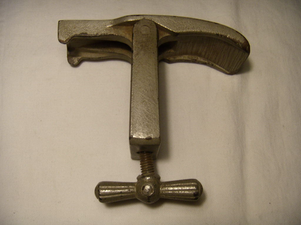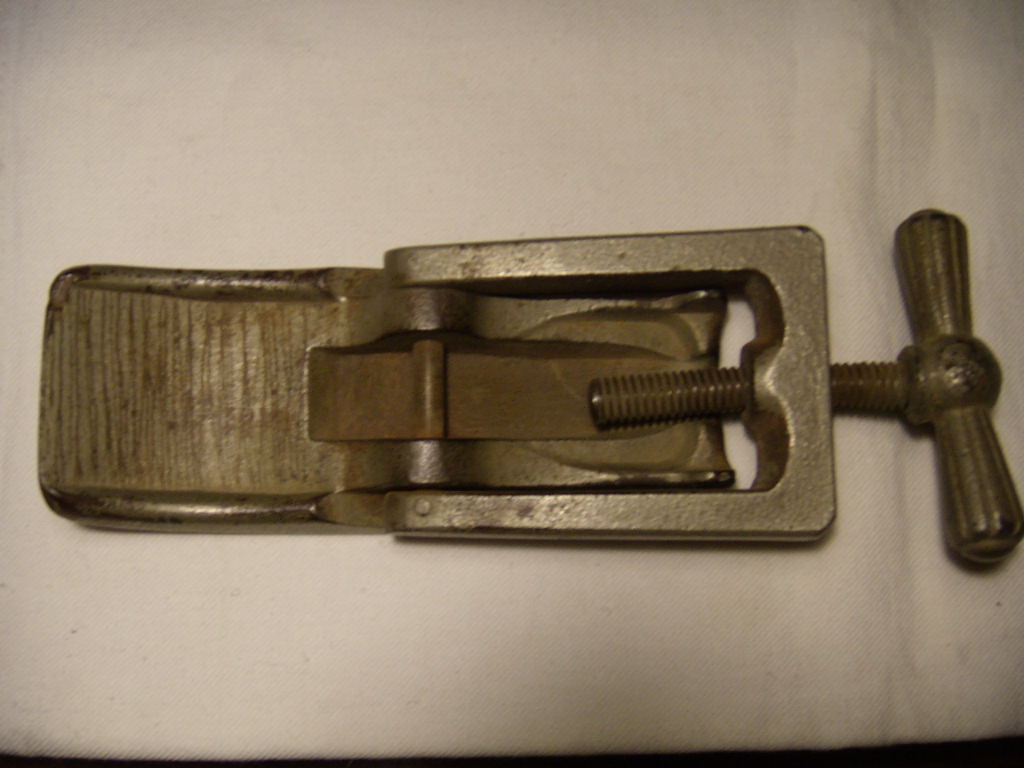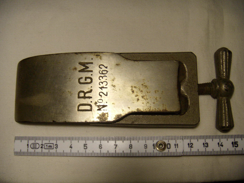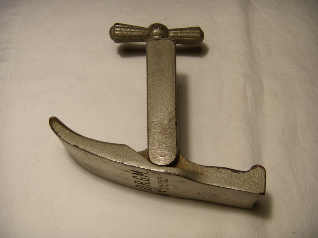 Hier noch ein Fund aus der Reichspatent-UFO-Kiste.Das Teil ist aus Eisen,vernickelt und sehr stabil.Habe es bis jetzt für ein Zubehörteil eines alten Schlagzeugs gehalten.Ist aber eher ein spezielles Werkzeug.