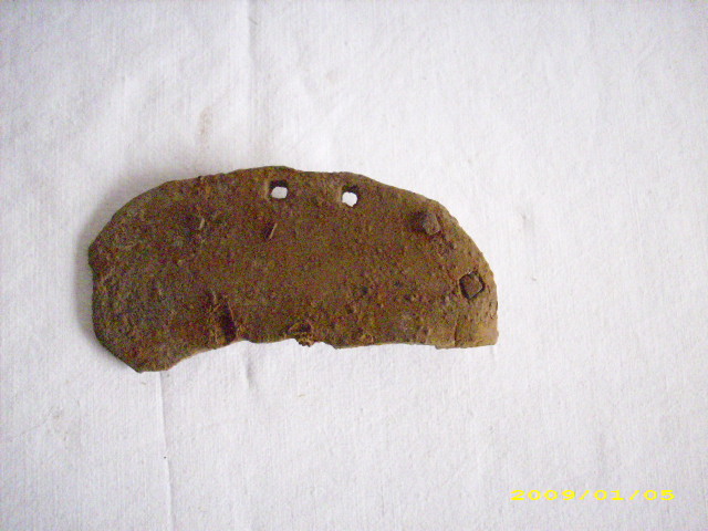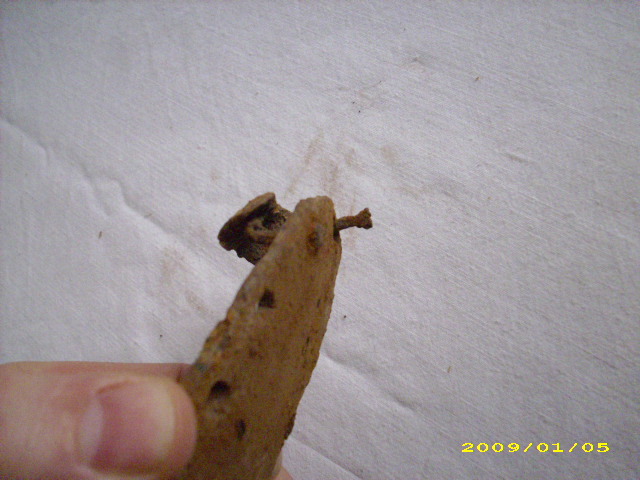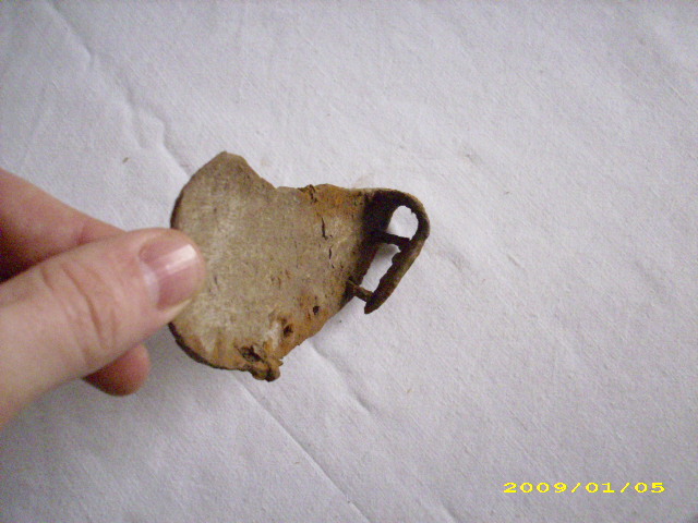 hallo hab vor einiger zeit dieses komische ding gefunden , ich schätze mal das es ein beschlag oder so ähnlich ist frage nur was für einer u wie alt ? wie man vielleicht auf dem einen foto erkennen kann sind die nägel 4 eckig muß dann wohl schon paar tage alt sein ? oder was denkt ihr ?