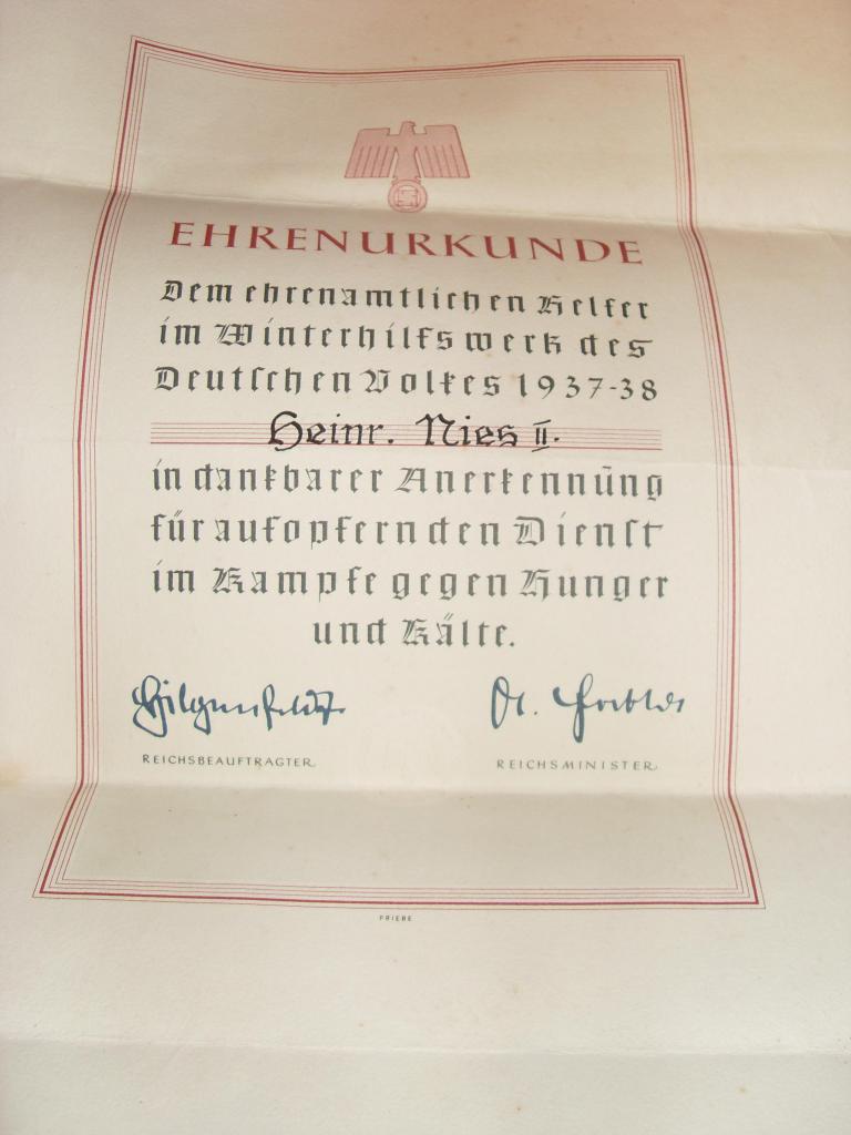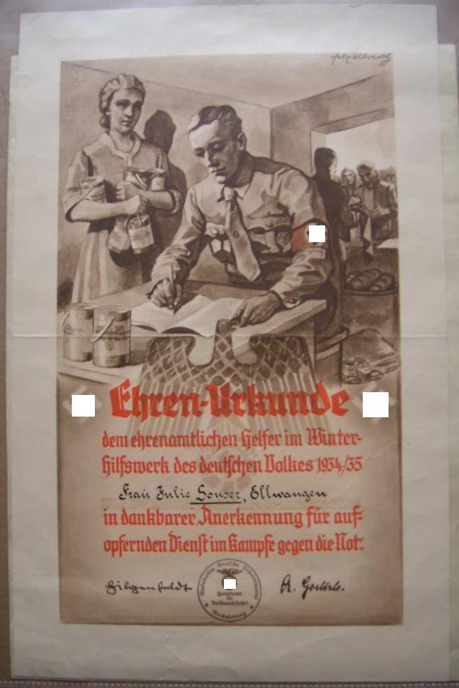sondern "nur" eine Ehrenurkunde des WHW