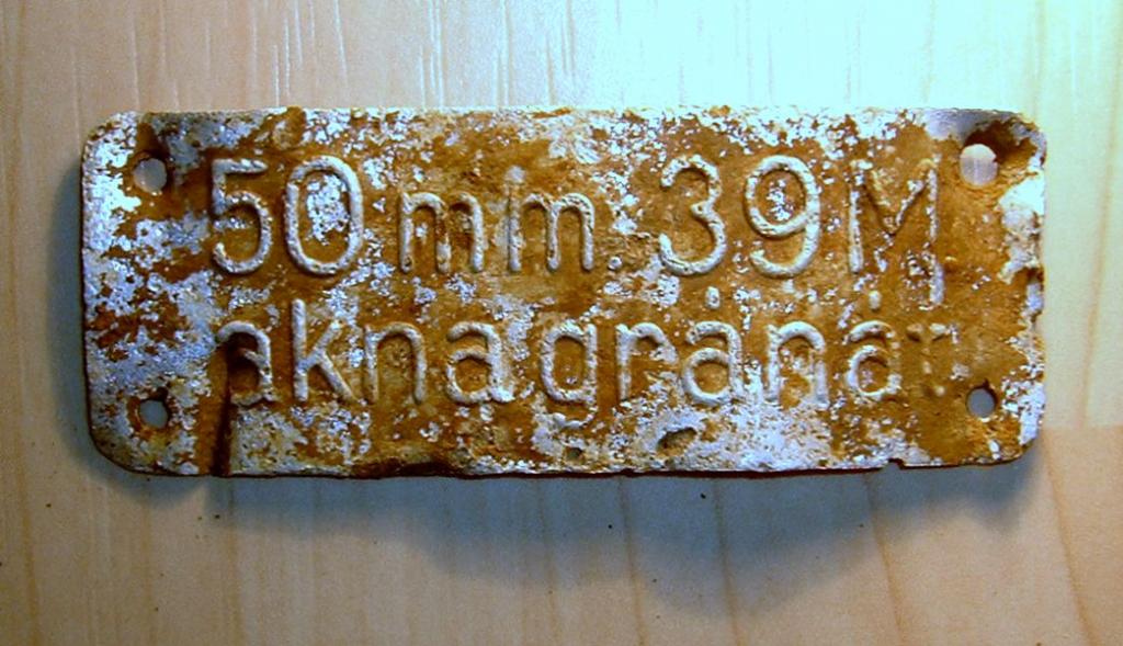ein weiteres, grabfrisches Indiz auf ungarische Truppen im selben Areal gefunden: Aluplakette mit Prägung 50.mm.39M aknagranata.