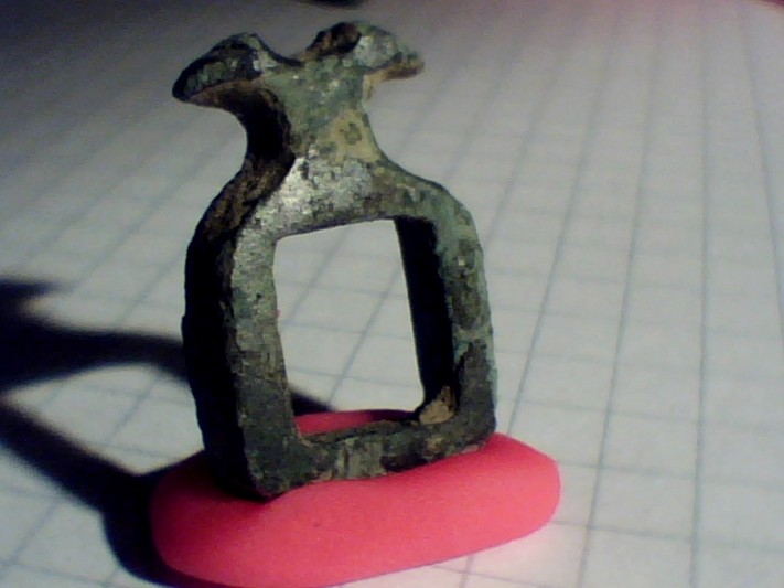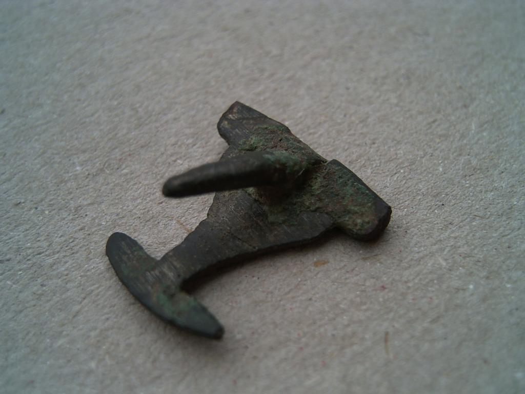 Hallo Leute, hier mal einen Fund den ich von einen Römischen Acker habe, wer kann mir dazu etwas sagen, Material Bronze mit Rest Versilberung Länge 2cm Breite 1,5 cm könnte es sich um ein kleine Fibel handeln.