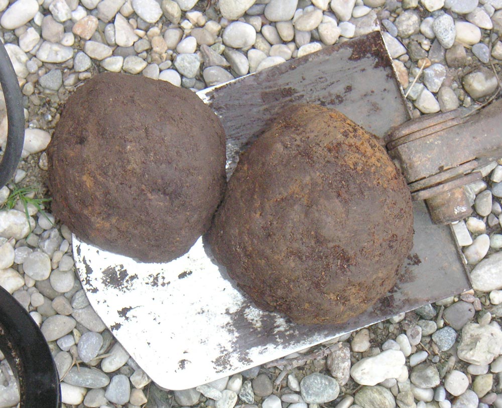 generell gibt es mWn noch (mindestens) drei Arten von Eisen-Kugeln, die mit Kanonenkugeln verwechselt werden könnten: