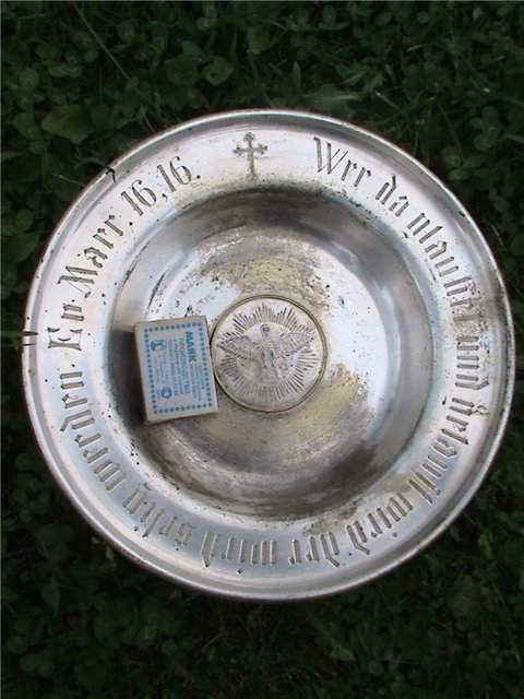 Was steht denn da dabei, meine Fremdsprachkenntnisse beschränken sich auf romanische .... kann das jemand übersetzen, der freut sich doch bestimmt, sowas feines gefunden zu haben (ich meine das im Ernst, ist doch schön, dass es nicht eingeschmolzen wurde und die Leute da was von halten)!