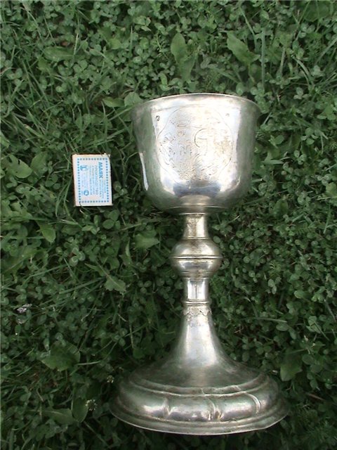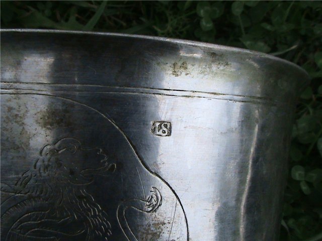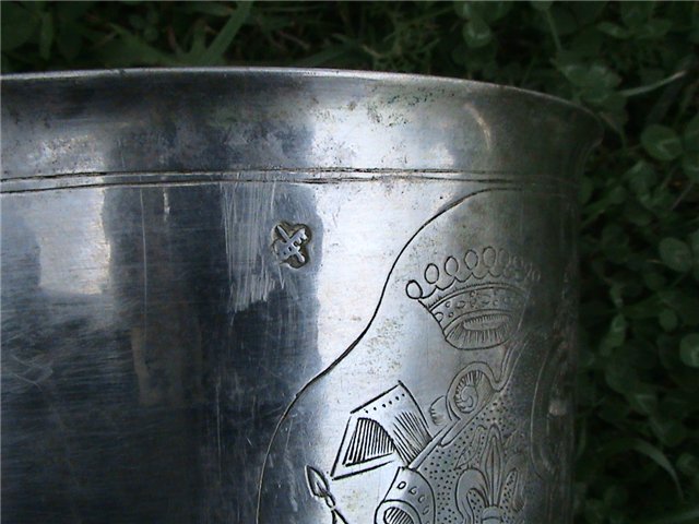 Den Taufkelch, kann man anhand der Beschaumarke (gekreuztes Schwert und Schlüssel), regional und zeitlich zuordnen, zumindest was den Hersteller betrifft.